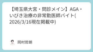 おすすめのバイト求人情報 【埼玉県大宮・問診メイン】AGA・いびき治療の非常勤医師バイト(2026/3/16現在掲載中)