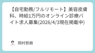 おすすめのバイト求人情報 【自宅勤務/フルリモート】美容皮膚科、時給1万円のオンライン診療バイト求人募集(2026/4/3現在掲載中)