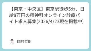 おすすめのバイト求人情報 【東京・中央区】東京駅徒歩5分、日給8万円の精神科オンライン診療バイト求人募集(2026/4/23現在掲載中)