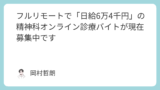 在宅でのオンライン診療の中で、「AGA治療」が私としては最もおすすめできると思っています。その理由としては、1) オンライン診療バイトの中で、専門医による精神科バイトに次いで時給が高い傾向にある。2) 使用する薬剤が決まっていて(ミノキシジ...