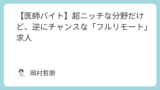 オンライン診療バイト、特に自宅での勤務となりますと、時給1万円を切ることもまぁまぁあるわけですが、そんな中、時給1万円と固定、さらにはインセンティブでその時給よりも上を目指すことができるという好条件の求人が民間医局[PR]
