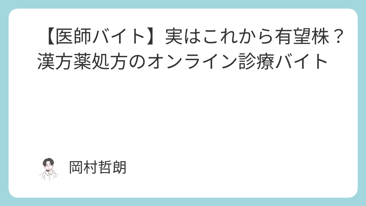 大手医師の求人紹介会社が、漢方処方をメインとするオンライン診療のクリニックについてのアンケート募集を行っていたこともあり、実はこれから「漢方薬処方のオンライン診療」の求人募集が出てくるのではないか、と思っていたりもします。