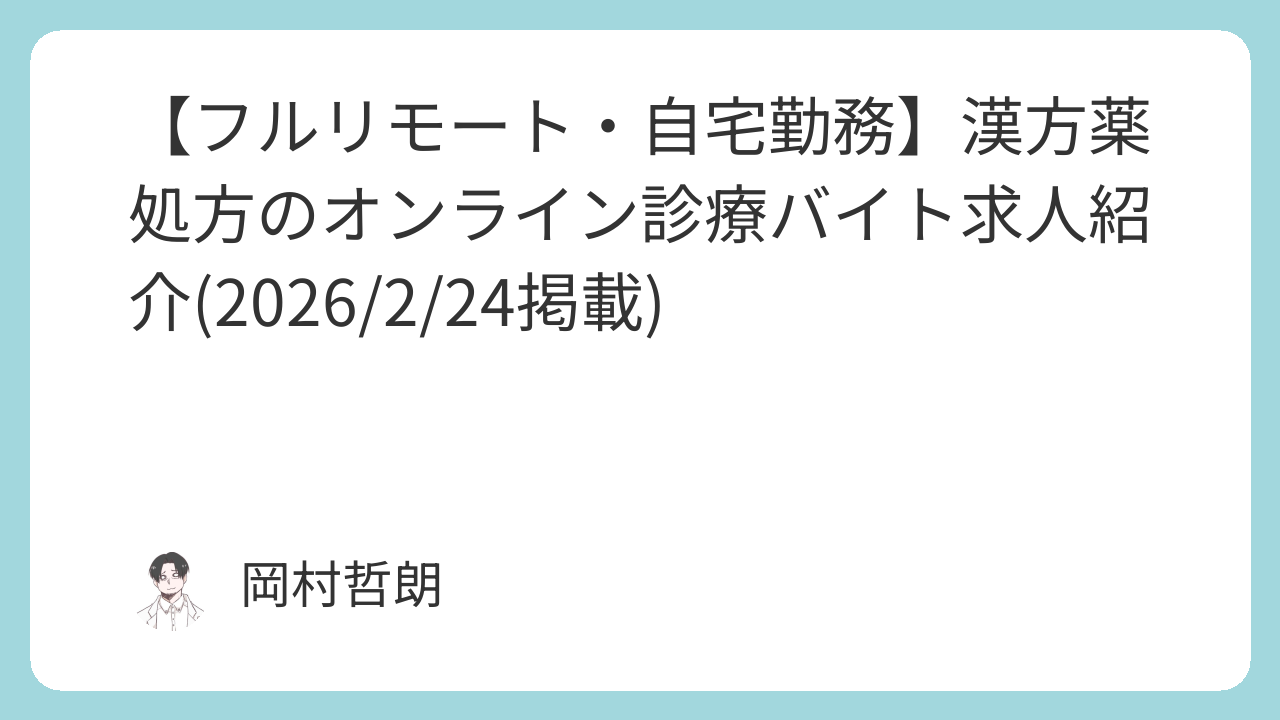 オンライン診療で、漢方薬処方を行うクリニックのバイト紹介です。なんと言ってもフルリモート(完全自宅勤務)で診療ができる点が大きな特徴となっています(全国どこからでも応募・勤務可能)。
