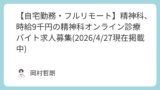 【自宅勤務・フルリモート】お好きな時間に働ける時給9000円の精神科オンライン診療バイト(2026/3/13現在掲載中)