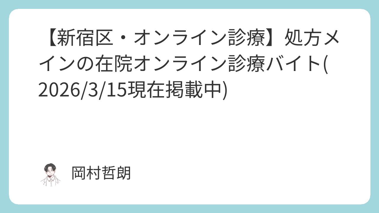 まず、自由診療領域に興味のある先生には特におすすめできる求人です。ピル、ED、AGA、性感染症、GLP-1など、一度覚えてしまえば、同様のバイトが今後もできるのもいいですね。また、オンライン診療が主体であり、対面よりも勤務しやすいというドクターもおられると思われます。