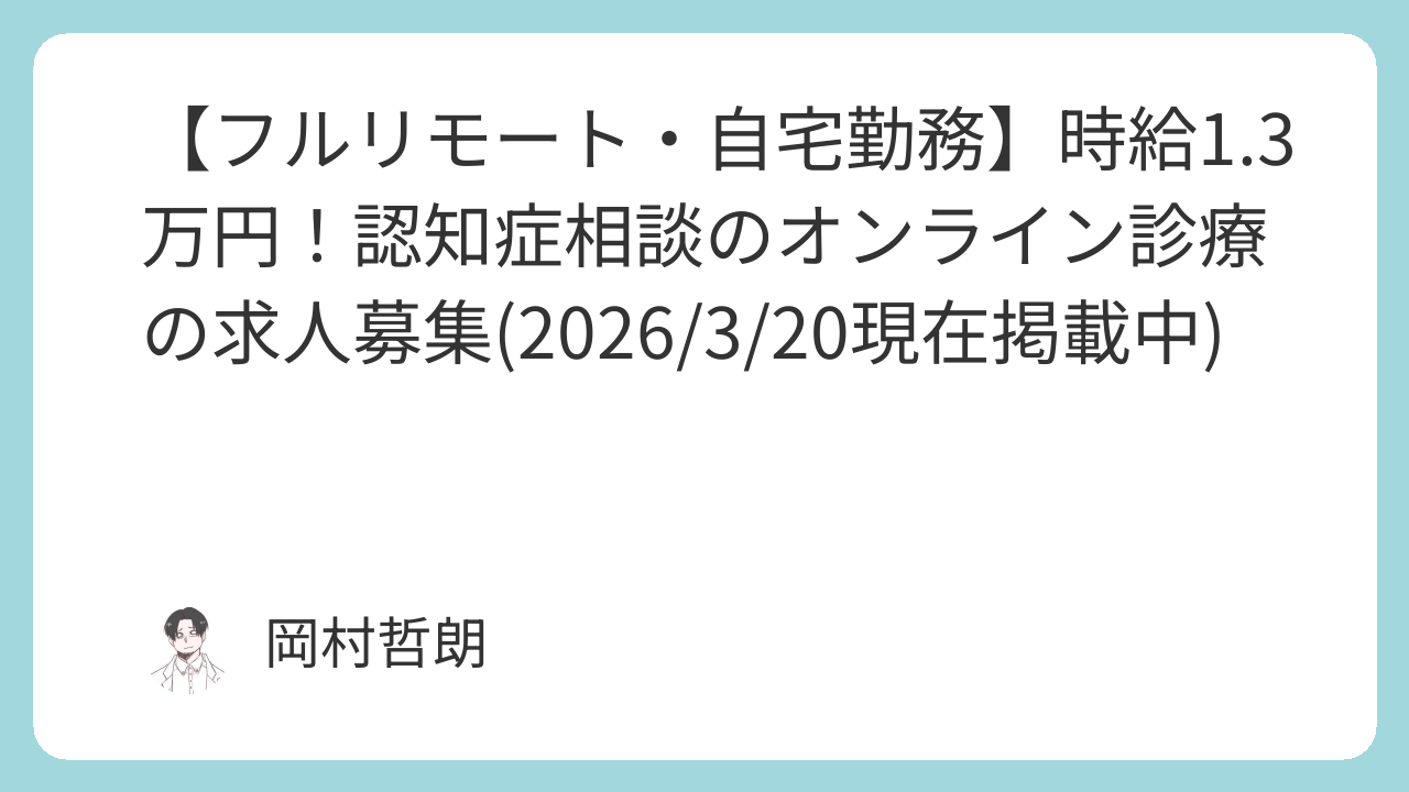 【フルリモート・自宅勤務】時給1.3万円!認知症相談のオンライン診療の求人募集(2026/3/20現在掲載中)