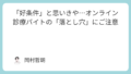 最近、非常勤バイトの求人を見ておりますと、「オンライン診療を開始予定です」といった一文が添えられているのを見かけたりします。あるいは、非常勤外来バイトの採用面接で、「オンライン診療もありますがご対応いただけますか?」とわざわざ質問するところもあるようです。