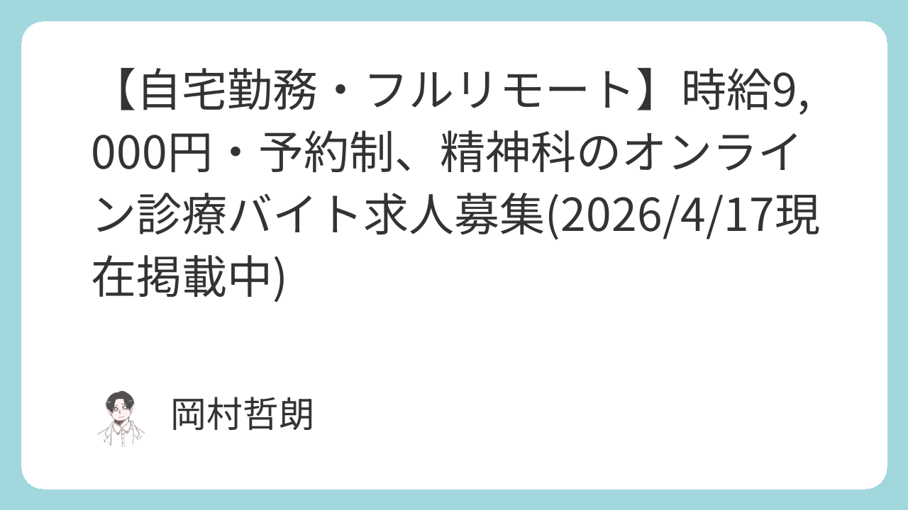 精神科のフルリモート勤務ですと、おおよそこのあたりの時給が目安になっていそうです。こちらの求人の特色として、かなり自由に勤務できる体制ですので、働きやすい環境ではないでしょうか。